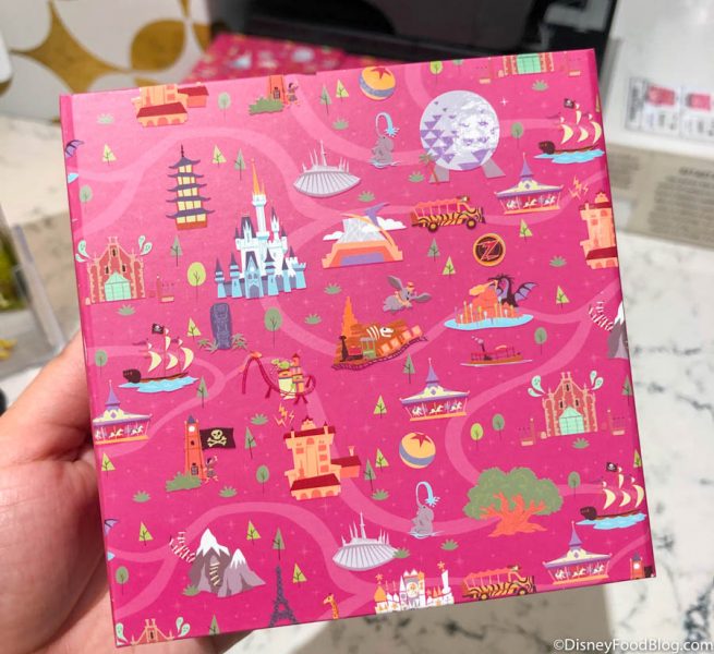 We gave you a lil sneak peek at the Park Life Dooney’s, but now they’ve finally arrived at Ever After in Disney Springs! Each of the bags features different iconic park locations and symbols on a pink background.