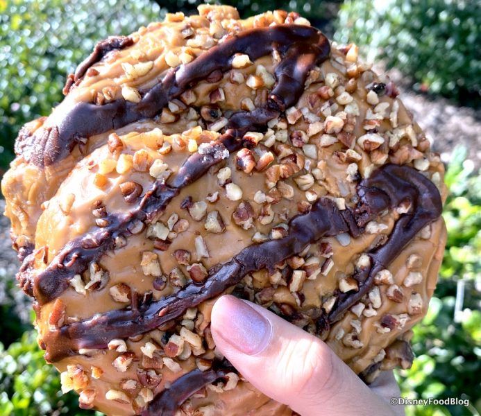 This isn’t just any cinnamon roll, friends, — if you can call any of Disney World’s spectacular cinnamon rolls “just cinnamon rolls”. 😉 Joining the ranks of the Main Street Bakery’s Cinnamon Roll, the Colossal Cinnamon Roll, and Gaston Tavern’s Warm Cinnamon Roll we proudly present to you the Turtle Cinnamon Roll!