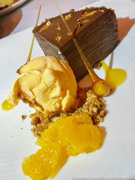 Every single item on this plate was amazing, but the chocolate cake was so moist and delicious that we could have had three more helpings. The orange ice cream almost tasted like a creamsicle! (Look at how cute those sugar dipped hazelnuts are!!!)