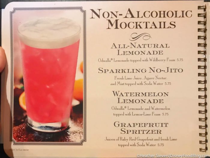 After we were seated at our table, we took a peek at the Non-Alcoholic Mocktails menu. We settled on the Grapefruit Spritzer made with grapefruit and lime juices and finished with soda water.