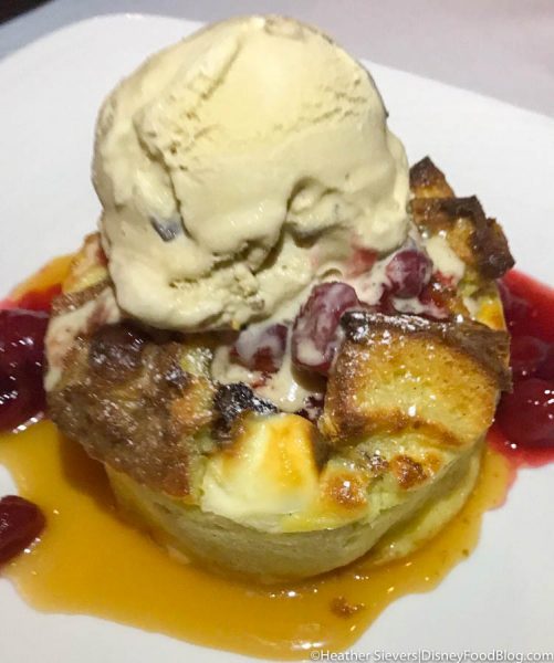 The Sourdough Bread Pudding was topped with caramel sauce, sherry macerated cherries, and toffee ice cream. This was fine, but definitely not our favorite.