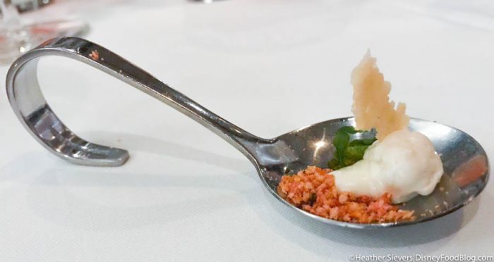 … we also received an amuse-bouche made with cream cheese, dried red pepper, and parmesan crisp (bread and cream cheese is the ULTIMATE combo).
