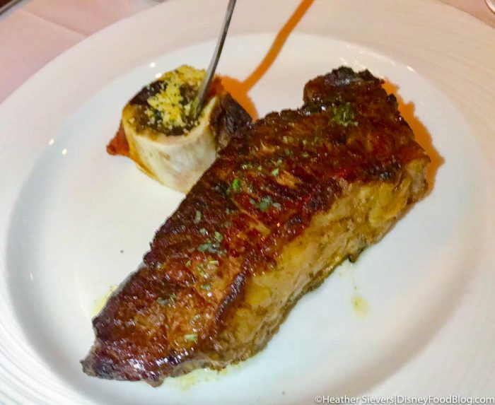 While there were numerous entrées off the menu that had our mouths watering, we sampled three popular menu items. The Prime New York Strip Loin was buttery and tender, giving each bite ah-mazing flavor (don’t get us started on the crazy tasty bone marrow it’s served with!)…