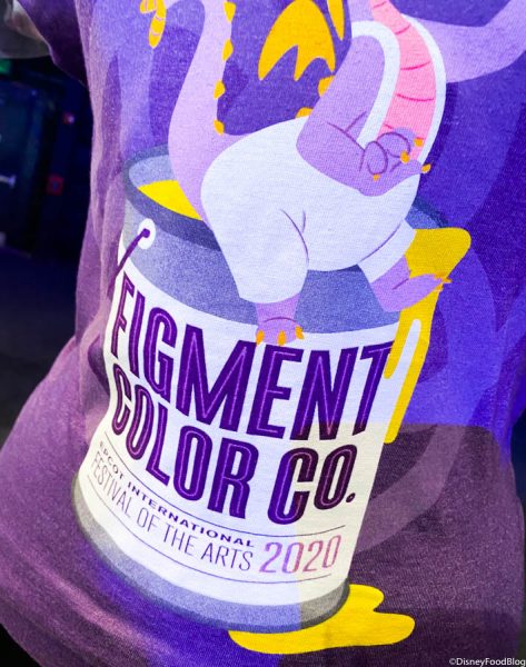This fun t-shirt features Figment sitting on top of a paint can, and you can see the Epcot logo in the background.
