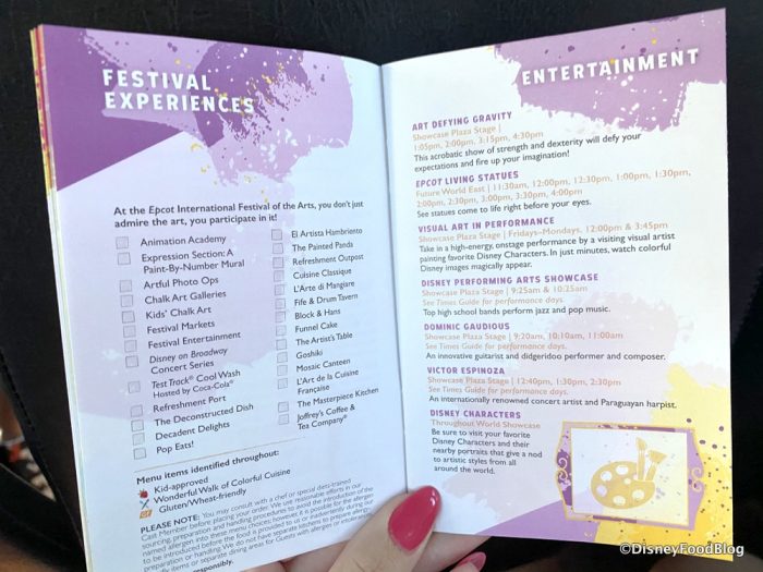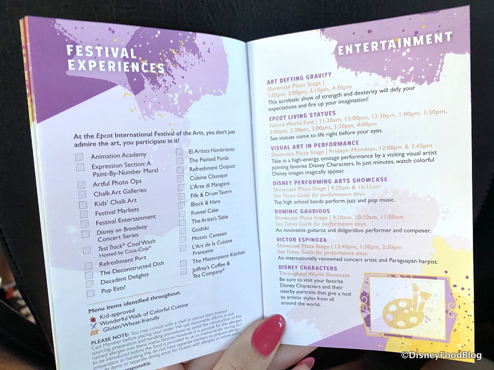 Disclosure: In nearly all circumstances, Disney Food Blog writers and photographers pay full price for their own travel, hotel, food, beverage, and event tickets. We do this because it’s important to us as journalists to ensure not only that we give you unbiased opinions, but also that you can trust us to do so since we’re paying our own way. On rare occasions, when we are invited by a company to attend a preview as media, and when we choose to accept that invitation, we will always make you, our readers, aware of that situation. Today, we were invited by Disney World to attend their media preview of the 2020 Epcot International Festival of the Arts. Note that when we attend events as media we are 1) Not required to review that event/food on any of our channels, and 2) Not required to review that event/food favorably. You can always count on DFB to give you a 100% unbiased and honest review of any event that we attend, food that we eat, or beverage that we drink. You can see more in our Disclosure Policy. Thank you for reading. — AJ