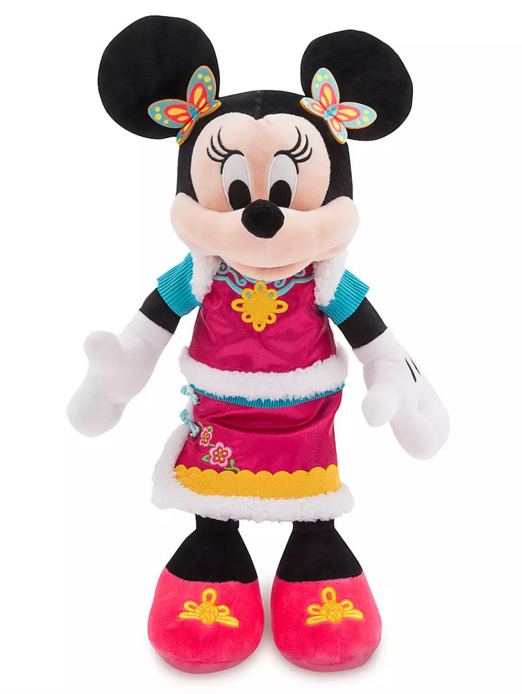 The Lunar New Year Minnie Plush for $29.99 is ridiculously cute, too! She’s wearing butterfly clips on each of her ears and has an adorable pink, blue and gold dress trimmed with fleece to match Mickey’s outfit. This plush totally reminds us of the ears debuting at the parks in just a few days!
