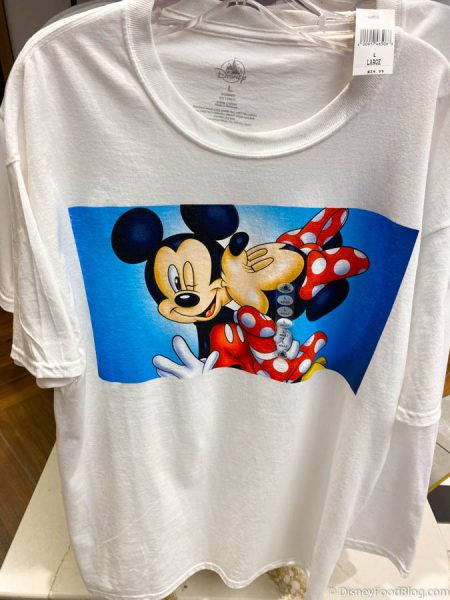 First up we spotted this super cute Mickey and Minnie t-shirt. We love the way the graphic is contained in a little box and we can’t wait to spot cute couples rocking a matching pair of these around the park! Grab this shirt for $24.99.