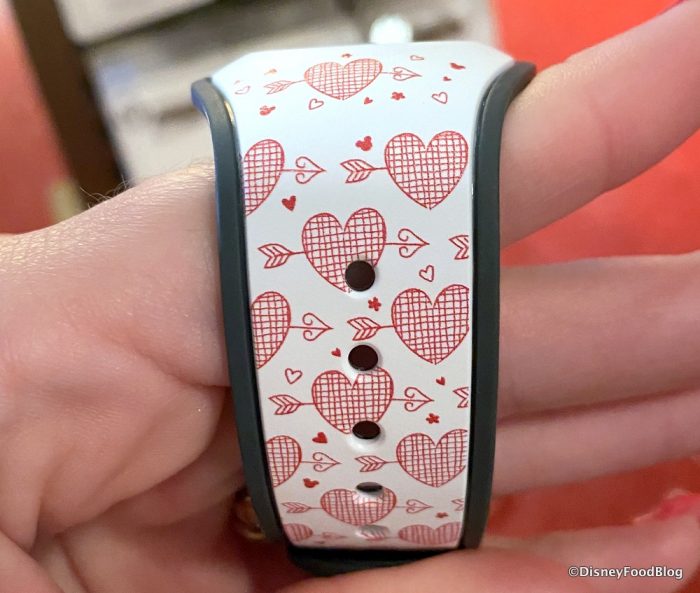 The other side of the Valentine’s Day MagicBand is adorned with more hearts and Cupid’s arrows! We’re really awestruck with how in love we are with this new MagicBand! We found it at Big Top Souvenirs in Magic Kingdom for $34.99 today, but luckily, it’s also available right now online! That means you don’t even have to travel to Florida to get your hands on this sweet piece of merch!