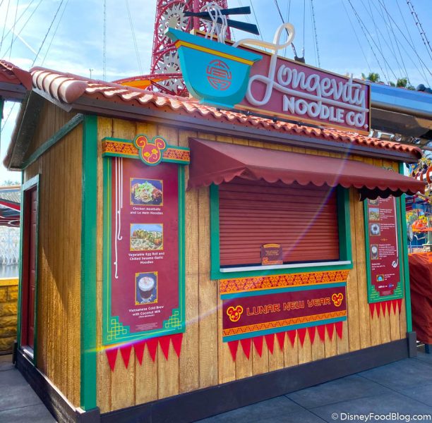 We’re super excited for this year’s Lunar New Year festival, which starts up at Disney California Adventure THIS FRIDAY! We’ve been counting down by admiring the super cool merchandise that’s being released, as well as the tasty-looking festival marketplace menus (eek!). Now, we have another piece of news to hold us over until January 17th — the Lunar New Year booths and decorations are up in the park!