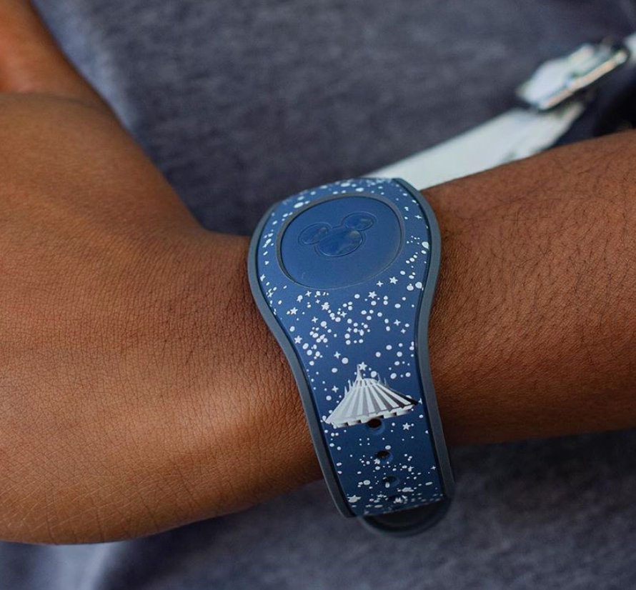 Disney Springs’ Instagram shared this photo today of a new Space Mountain MagicBand! According to the post, this will be a limited-release item, which means there won’t be very many of them to go around. The new Space Mountain MagicBand has a starry, dark blue night sky for its background and, of course, features the iconic Disney World attraction on its side!