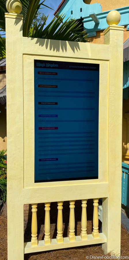 In Adventureland, they’ve replaced a boring old digital wait-time screen at the Guest Experience Kiosk with this new adventure-themed one. We love the new look!