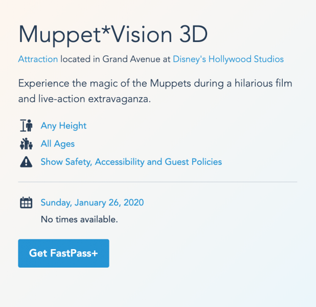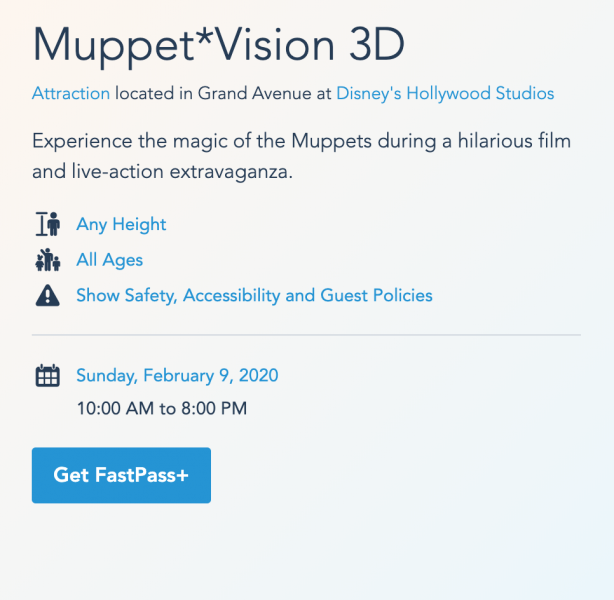 While we don’t know what this refurbishment entails, that does mean that Kermit, Miss Piggy, and the gang should be back when Muppet Vision reopens on February 9th, 2020 (so not a very long refurbishment). That is the date we saw a regular schedule re-appear on Disney’s website: