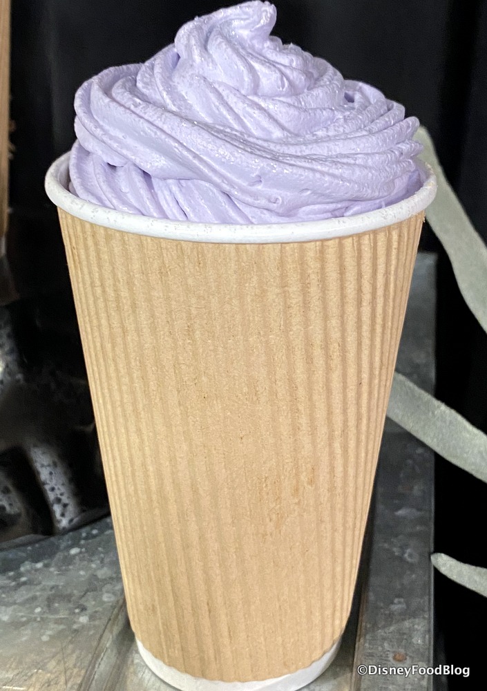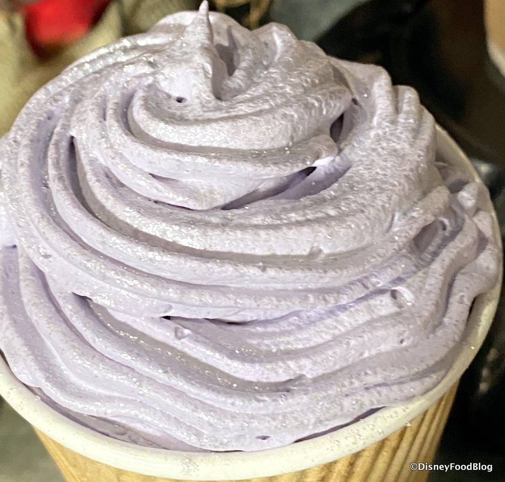 Even though it looks extra-terrestrial, it’s basically a regular hot chocolate drink with a shimmery, buttery, lavender-tinted whipped cream topping!