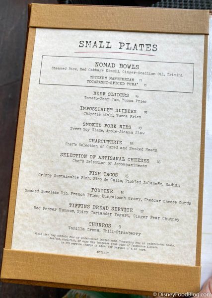 First off, we saw a handful of menu updates around the park today. Over at Nomad Lounge, we noticed that the Wagyu Bowl was no longer on the menu. Sad day, because we certainly loved this tender, meaty meal! To make up for it though, the poutine has been updated to the Truffle Poutine, and we can always go for those super truffle-y flavors!