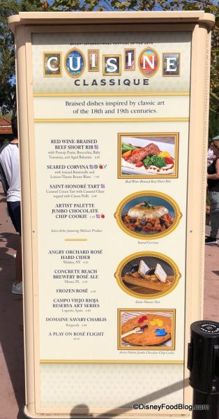 You can head over to Cuisine Classique during the Epcot Festival of the Arts from January 17th through February 24th. And, if you’re looking for some returning favorite or new dishes, you can keep up with us as we take you LIVE around the booths this year!