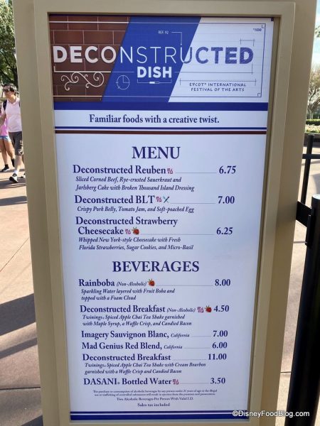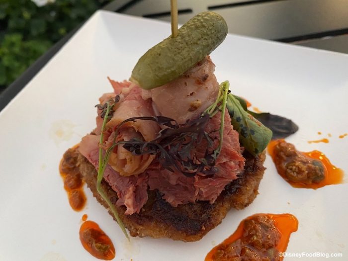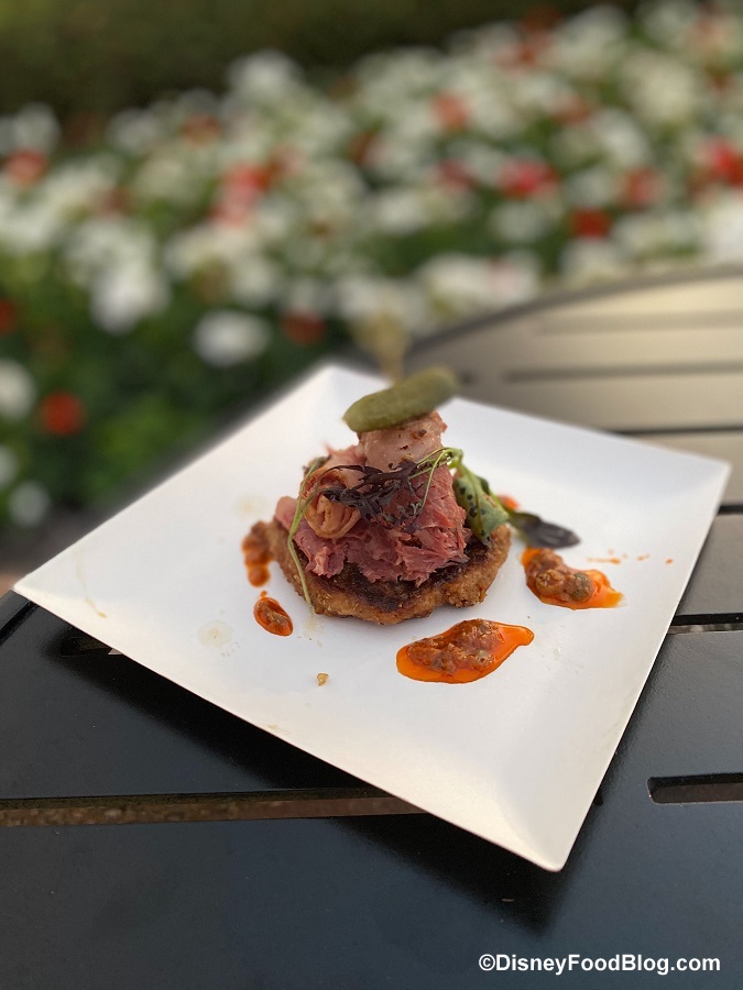 Although the drinks were tasty at the Deconstructed Dish, we can’t get over how AH-MAZING the food was! The Reuben and BLT happen to be some of our favorite eats of the day, and they were great portion sizes too. If you’re visiting the Festival of the Arts, be sure to pop over to Deconstructed Dish (you’ll thank us later).