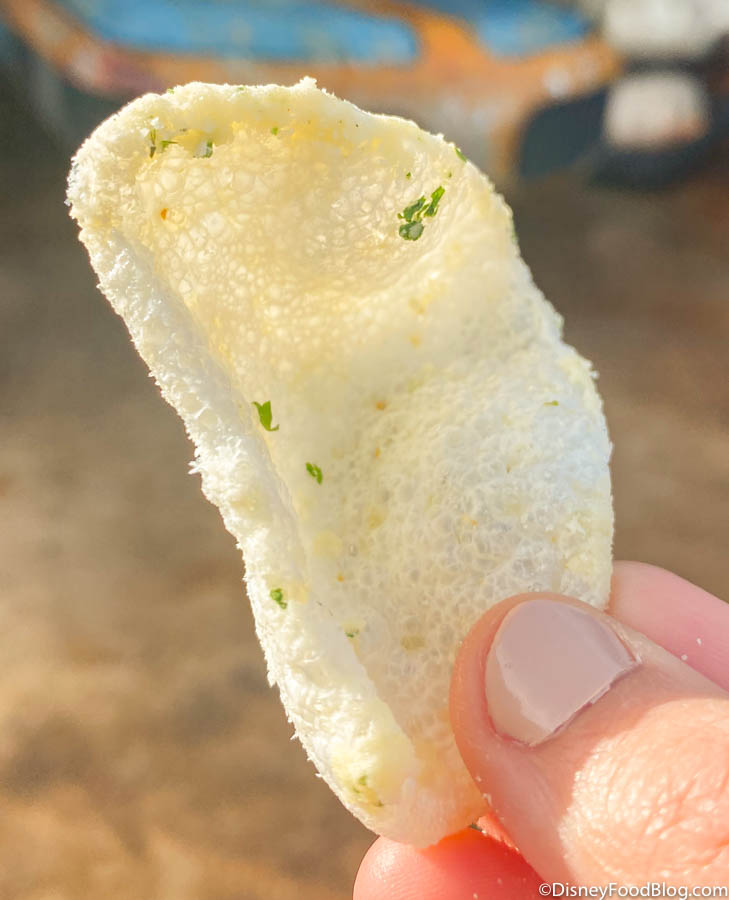 There is so much cheesy flavor in these chips, but they’re still very light and crispy! Plus, the garlic adds a kick of spice that ties the whole savory snack together, almost like a balance in the Force. We do recommend grabbing some napkins and water too, since there is SO much cheese with the chips (we’re not complaining)!