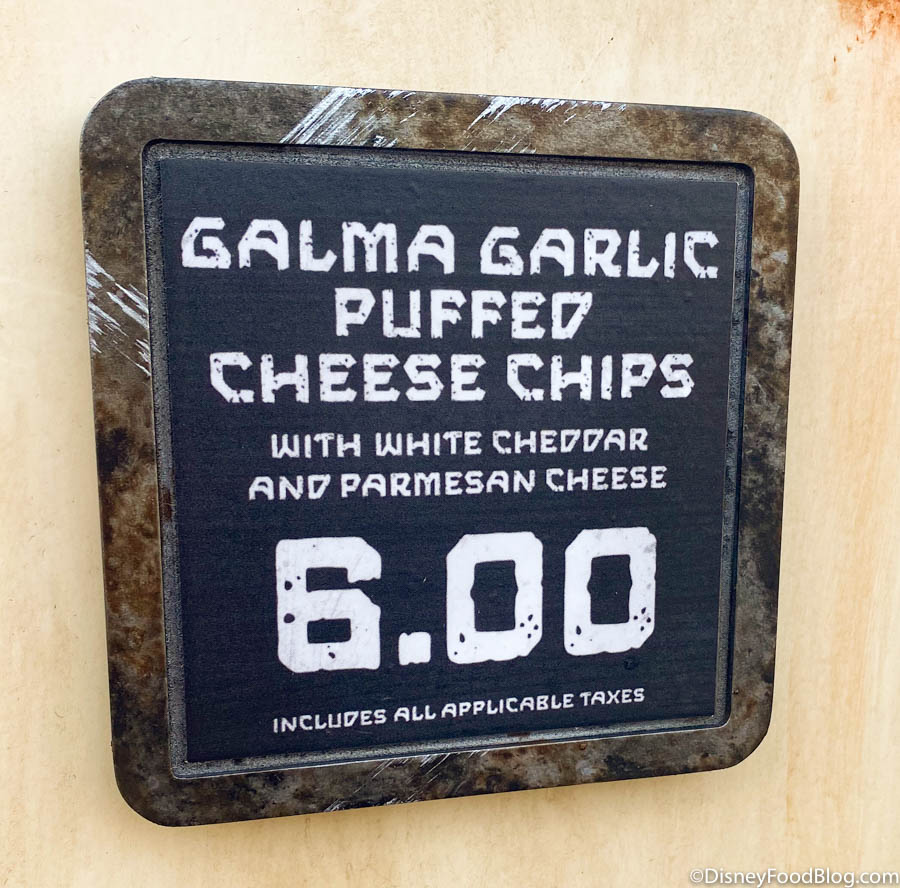 The Galma Garlic Puffed Cheese Chips come in a decently sized bag their $6 price tag and are available from various drink carts located throughout Batuu.