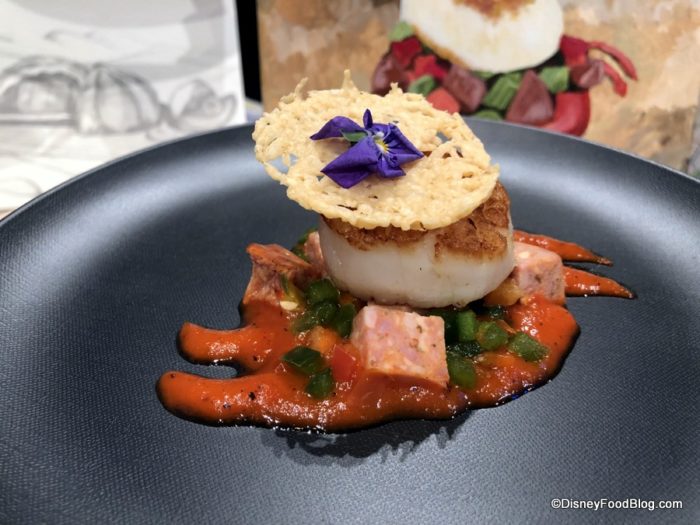 As always, a highlight for us here at DFB are the Food Studios located around Epcot’s World Showcase, much like the Marketplace Booths you’ll find at Epcot’s International Food and Wine Festival. And Epcot’s Festival of Arts eats are especially pretty to look at! They’re like eating little works of art!