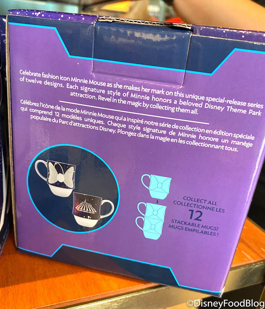 While one side has a big glittery bow, the other has Space Mountain, the $19.99 galaxy-themed cup can be stacked on top of the other mugs coming to The Main Attraction collection over the year!