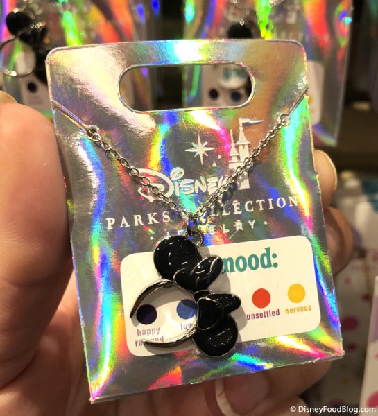 It’s very similar to the other Minnie “Earband” necklaces currently available in Disney Parks and Disney Resort hotels, but the color of these changes according to your mood!