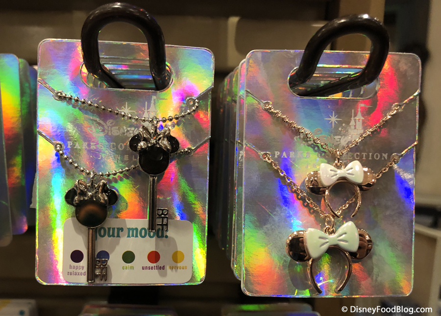 Lastly, we found a set of two Minnie Mouse “Earband” necklaces for $19.99. They are in the same packaging as the mood-changing sets but were not labeled as mood jewelry, FYI! So don’t expect these to shift color on you! Even so, they’re still quite FRESH!