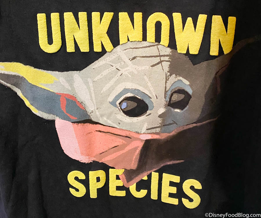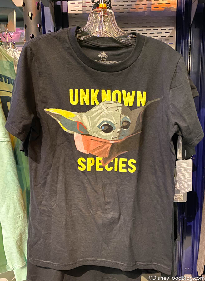 Over at Mickey’s Star Traders in Disneyland, we spied this brand new shirt! The shirt features Baby Yoda is a more artistic rendering than we’ve seen on other shirts, making him almost look like he’s been painted to life! (He’s still just as cute though.)
