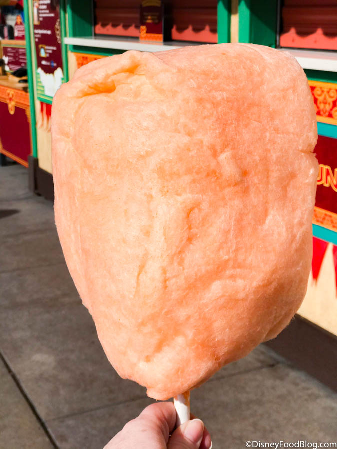 And, let us tell you — the orange flavor is REAL in this cotton candy!! Before you even bite in, you can smell the sweet, citrusy flavor that the treat has. The sugar tastes like artificial orange sugar, but it’s not too overdone (AKA not sickly sweet).