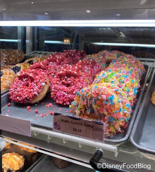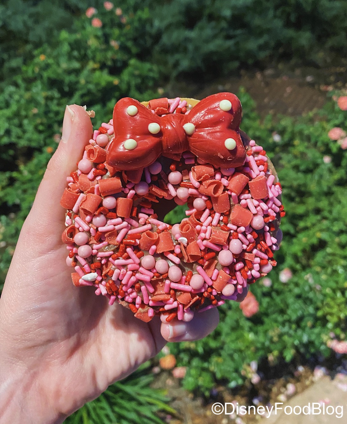 The new seasonal donut at Roaring Fork is one you’ll want to catch a ride on the Magic Kingdom ferry boat for! We’re calling it the Minnie Valentine’s Donut, and it is so cute!