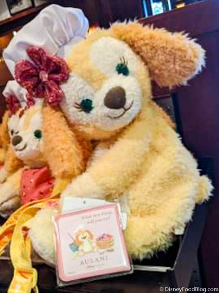 Disney just recently released word of a brand new friendly face coming to Aulani resort in the form of a TON (and we mean a TON) of merchandise! Duffy the Disney Bear is an international Disney icon and his fuzzy friends are known as fashionable pals around the world. Now, CookieAnn has arrived at Aulani! Check out this super cute CookieAnn plush for $35 with her sweet apron a signature chef’s hat!