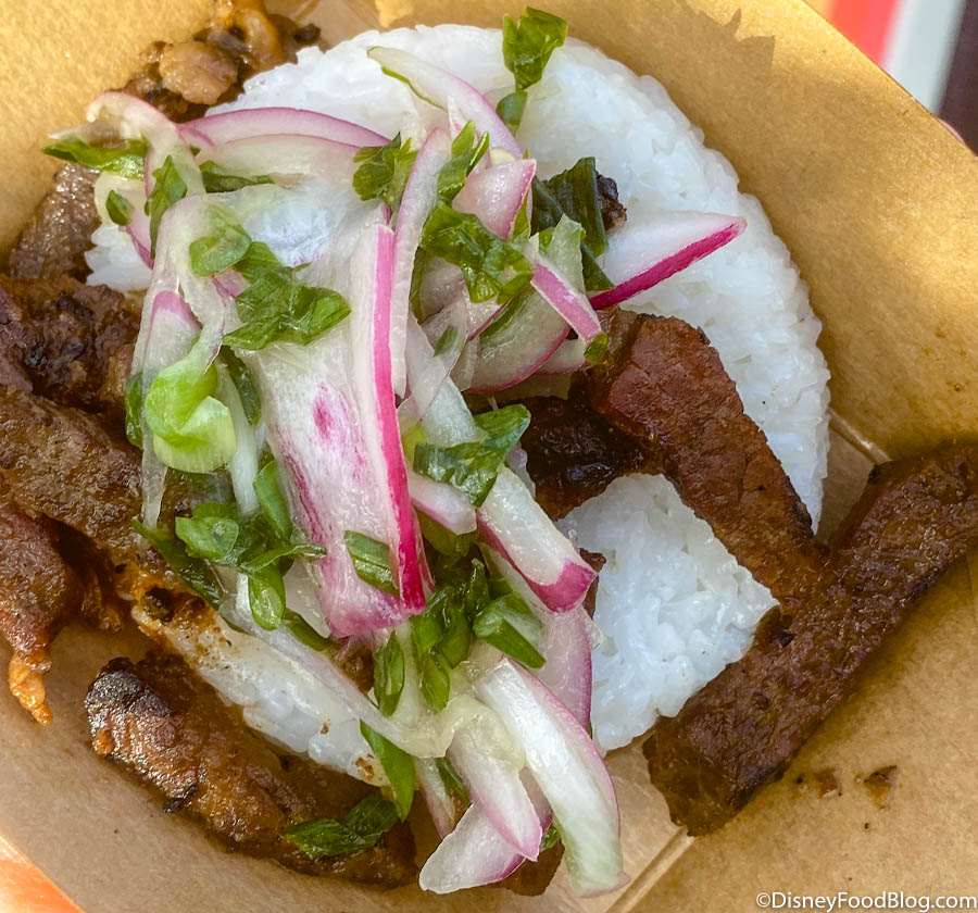The Smoked Beef Bulgogi Short Rib at Lucky 8 Lantern is new this year and was maybe the best thing we ate ALL DAY! The short rib comes served with a cake of steamed white rice and a crispy green onion salad. LOVE the portion size, flavors, and textures of this delicious festival offering which costs $8.25!