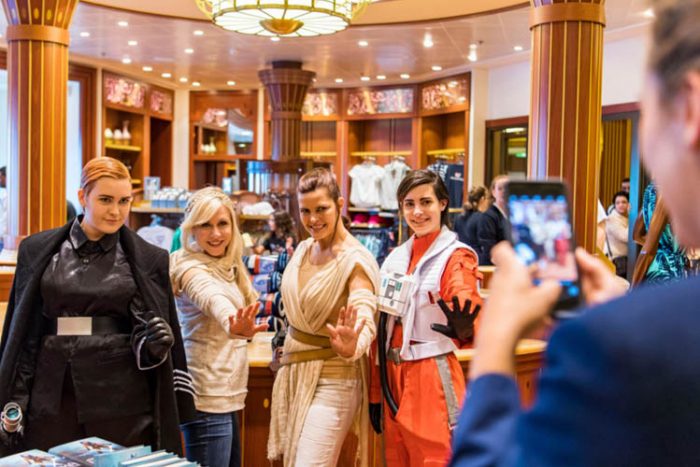 Disney has stated, “with more than a dozen of the galaxy’s most formidable and heroic characters onboard, you will meet with the best of the Resistance including Chewbacca, C-3PO and R2-D2; come face-to-face with Darth Vader; and be on watch as Stormtroopers, Bounty Hunters, and Jawas roam the ship!”