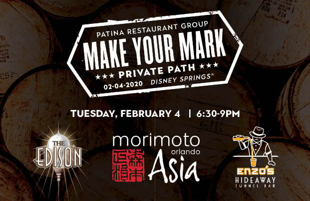 On Tuesday, February 4th, the Patina Group will be holding the “Make Your Mark” event that will take guests to three of their restaurants in Disney Springs for a night filled to the brim with food and drink.
