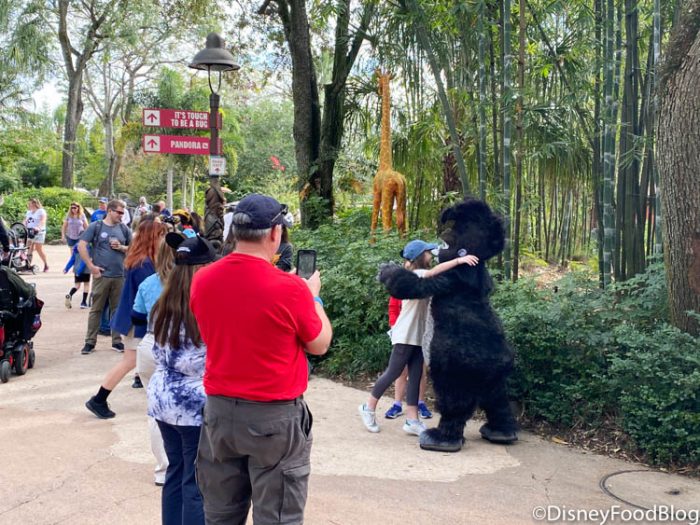 We’re trashin’ the camp AND heading over to meet Terk (our best pal)! The feisty gorilla was meeting guests outside of Creature Comforts when we were there, which is the same spot where Flik and Timon have previously been seen.