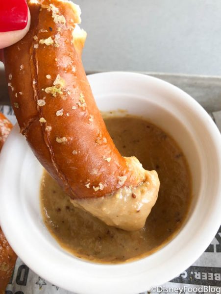 And we’re happy to tell ya, it’s equally yummy! In fact, for us, it even felt softer than the former version. It comes with the same two sauces, so if you were a big fan of the Beer Fondue cheese sauce and the grainy IPA Mustard, you’ll be excited to know they’re still along for the ride!