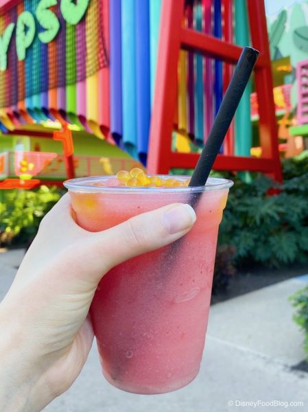 The passion fruit boba on top adds a nice mix to the flavor as well. Super delicious! You can get it for $16 at Singing Spirits at Disney’s All-Star Music Resort.