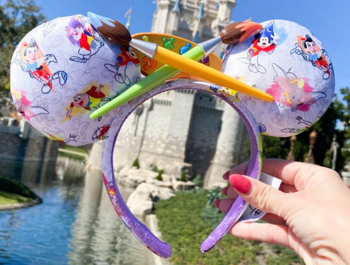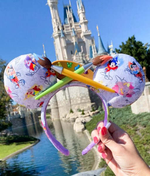The new Ink & Paint Minnie Ears have an artist’s palette with crisscrossed paintbrushes! We love how the “paints” are Mickey-shaped!