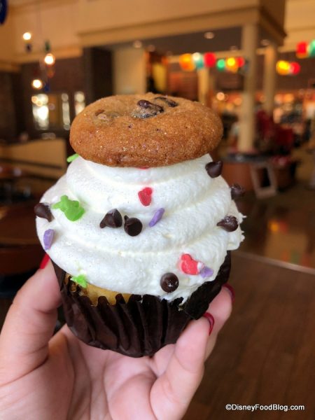 … or a CUPCAKE? Well, at The Artist’s Palette in Disney World’s Saratoga Springs Resort, you don’t have to choose, thanks to the Milk & Cookies Cupcake!
