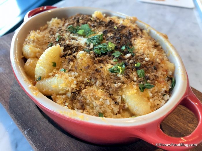 While technically a lounge, The Enchanted Rose Bar and Lounge is a Beauty and the Beast-themed foodie destination at Disney’s Grand Floridian Resort and Spa. Located on the resort’s 2nd floor in the main lobby, they are serving up a limited menu that features some substantial and delicious options. Snack on Crab & Gnochetti Gratin, Short Rib Sliders, or Truffle French Fries while basking in an elegant Baroque-influenced atmosphere (There are also some subtle Beauty and the Beast details scattered throughout the location!).