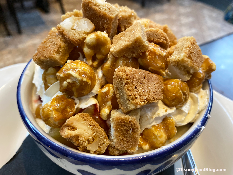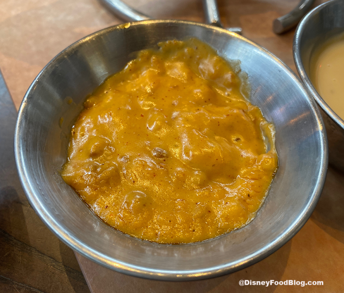Of the new starters, we had to try the Giant Pretzel and Queso. This German-style Pretzel is insanely large, like we’re talking twice the size of our heads! It’s really good but definitely not as soft as the big pretzels that can be found in Epcot’s Germany Pavilion or Pongu Pongu in Disney’s Animal Kingdom. We could have also used a tad bit more salt on this thing.