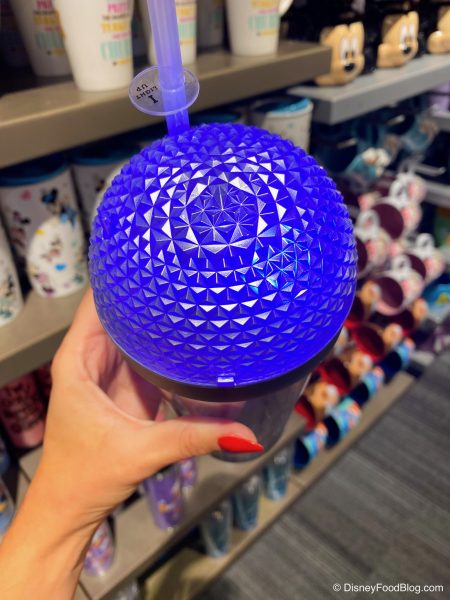 While perusing the store, we couldn’t help but notice this dazzling tumbler. And when you see what this tumbler does, you’ll spot it from a mile away, too! Let’s just say…there are lightsabers, there are even light-up Mickey ears, there have even been light-up popcorn buckets, and while we’ve seen plenty of light-up tumblers, we’ve never seen one quite like this.
