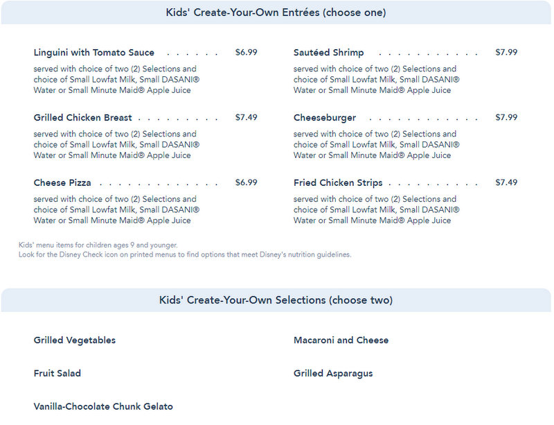 Each entrée comes with your choice of two sides, like Macaroni and Cheese and Vanilla-Chocolate Chunk Gelato. Could we get some of that for the adults, too? Hopefully, kids will enjoy the larger selection of options here!