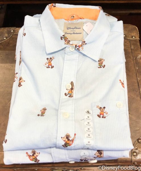 And that’s where we discovered this trunkload of new Tommy Bahama Shirts — like this one for $150! Why, we can almost see the palm trees swaying on this thing! And look! There’s Mickey!