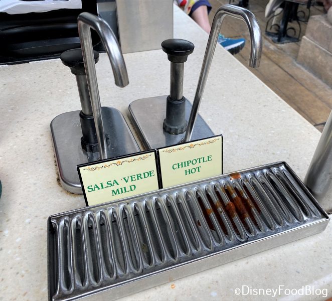 La Cantina has two condiment stations where you can grab napkins and utensils, as well as a few salsas for your dish. Trust us when we say you’re going to want to grab a little cup or two of these! (More on the salsas later — keep reading!)