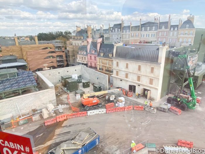 That’s why today, while we were riding “high in the sky” on Disney Skyliner’s Epcot line, we snapped a few pics of the construction happening behind the France Pavilion at Epcot’s World Showcase!