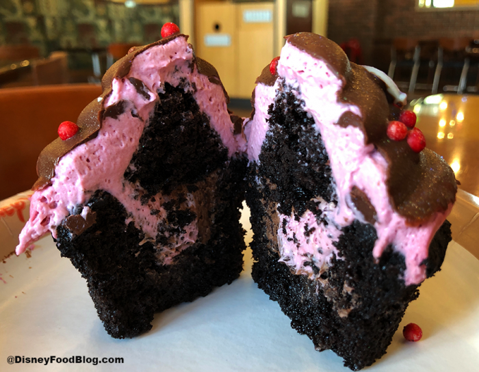 We thought this was an excellent addition to the Valentine’s offerings found throughout the world. If you’re a big fan of chocolate this one is probs for you. The Raspberry flavors here are quite strong, so heads up if that isn’t your thing! The Chocolate-Covered Raspberry Cupcake is available at The Artist’s Palette at Saratoga Springs for $5.99 for a snack credit for those on the Disney Dining Plan.
