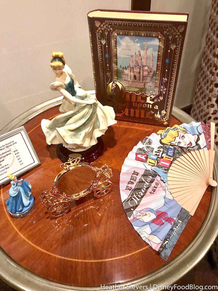 Before you make your way to your table, you can admire a collection of Cinderella memorabilia (yes, even a REAL LIFE fairytale book) that’s available for purchase…