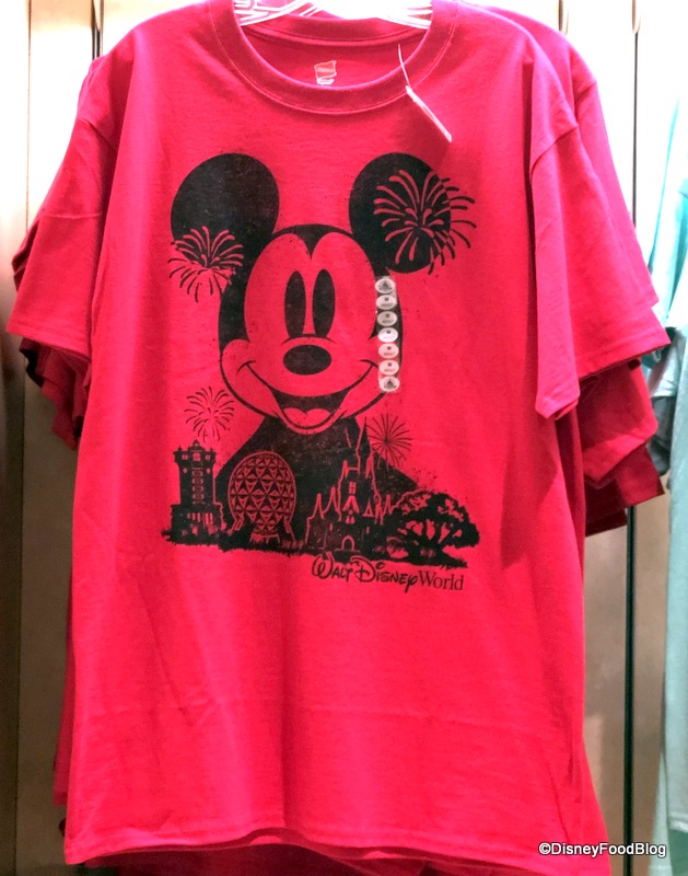 We’re totally digging this new-to-us shirt with all the park’s icons. It even has fireworks going off around Mickey for $24.99. We gotta represent that park life!