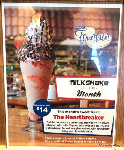A new month means it’s time for a new milkshake of the month at the Dolphin Resort’s Fountain. The new Heartbreaker Milkshake hopefully doesn’t break our hearts, and with all that ice cream, we don’t think it will. 😉