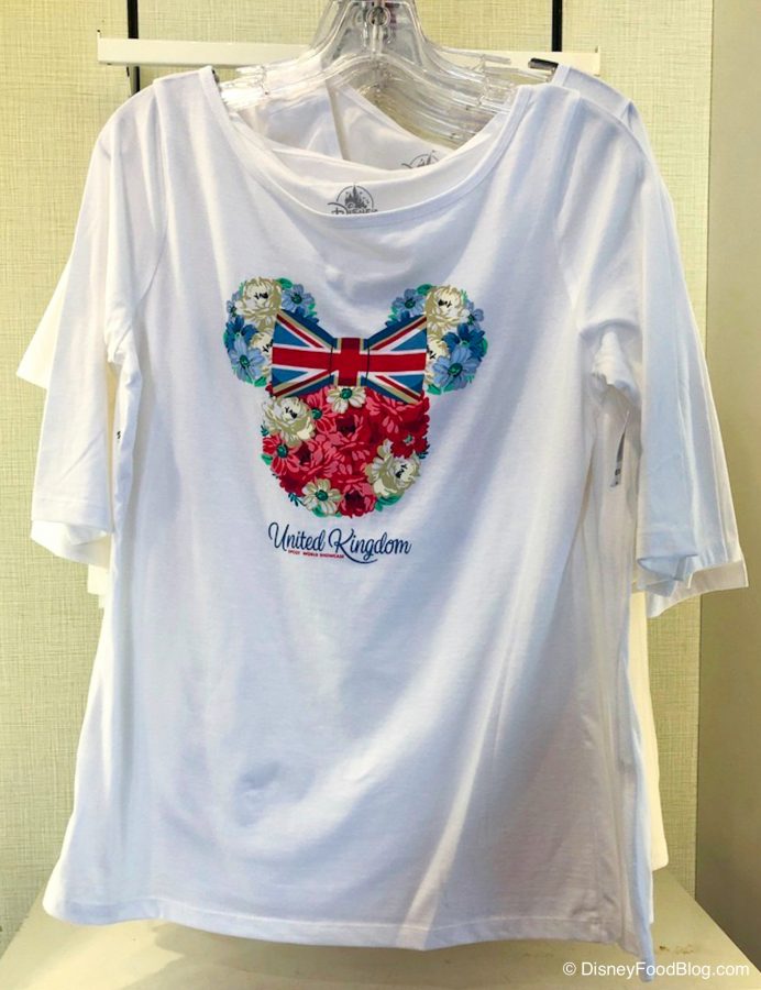 If you’re looking for unique souvenirs, we highly recommend you check out the many countries’ gift shops! Case in point, while we were gushing over the newest United Kingdom-inspired Minnie ears, we couldn’t help but notice some other new apparel that could totally match those ears to make a full-on U.K. outfit!